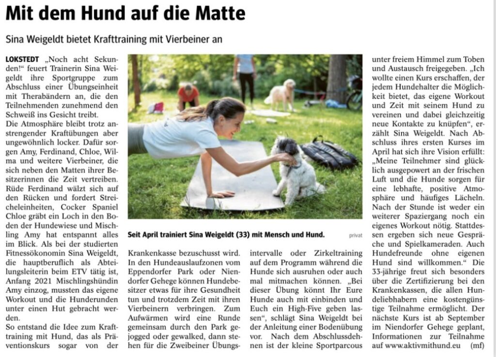 ,,Aktiv mit Hund“ im Niendorfer Wochenblatt (26.07.2025) – hier online lesen